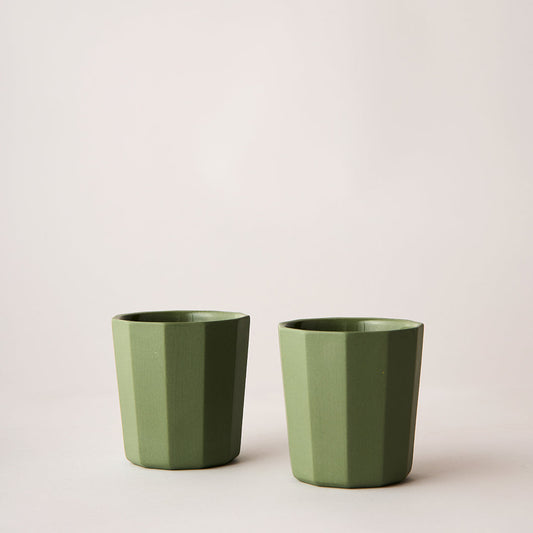 Olive Facet Latte Cups Set of 2
