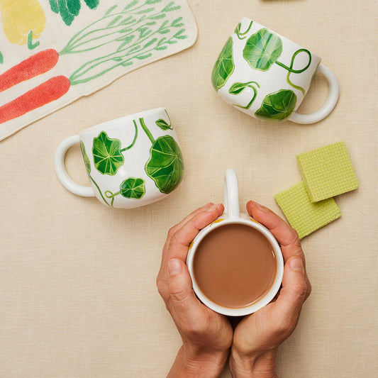 Green Nasturtium Sunny Day Mugs Set of 2