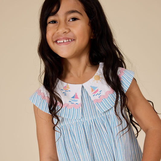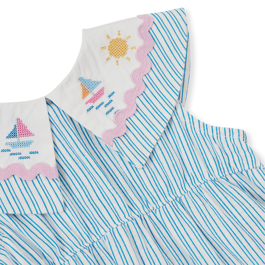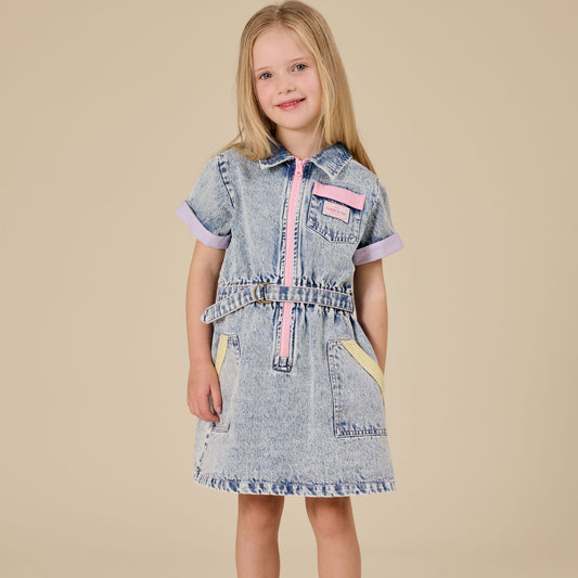 90's Bold Stripe Heidi Denim Pinafore Kids Dress