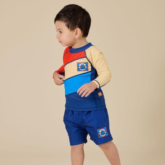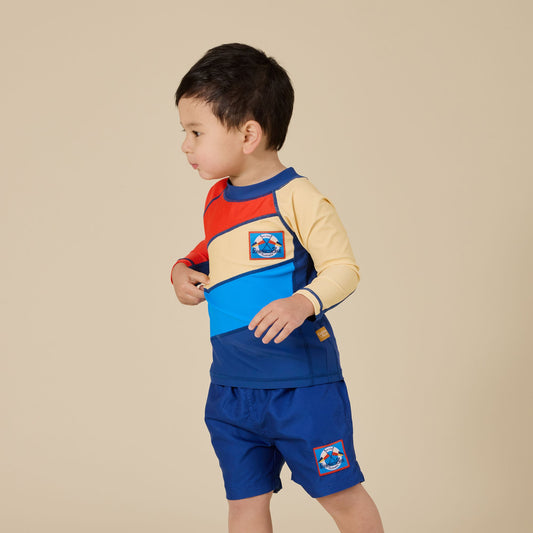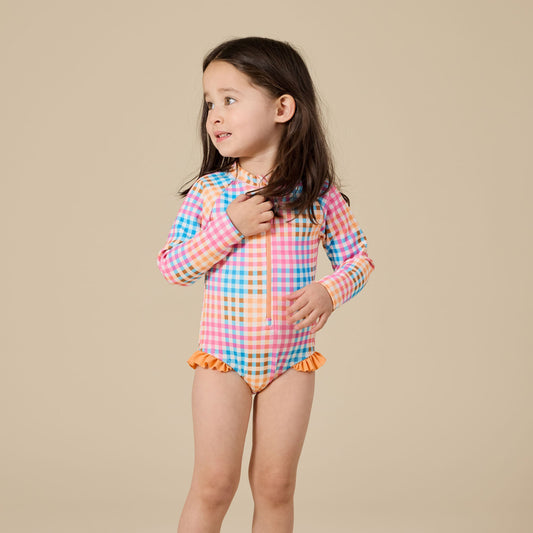 Rainbow Gingham Long Sleeve Frill Kids Swimsuit