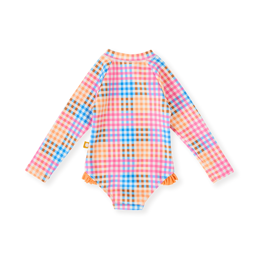Rainbow Gingham Long Sleeve Frill Baby Swimsuit