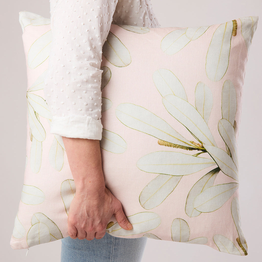 Banskia Foliage Linen Cushion With Feather Insert
