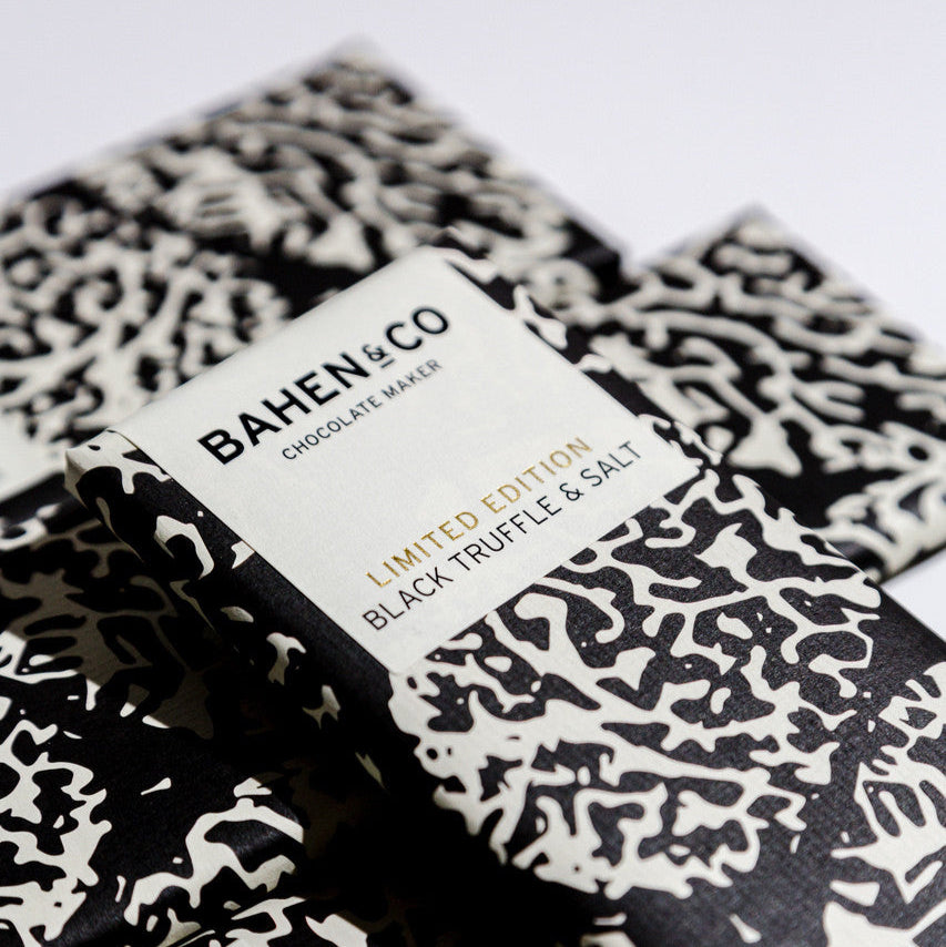 A limited edition flavour, with locally grown black Perigord truffles. The unique flavour of black truffles, paired with a pinch of sea salt, and combined with Bahen & Co stone ground chocolate.