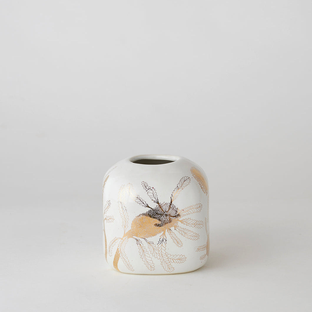 A soft edged, sculpted form finished with a delicate speckle glaze. The Angus & Celeste Cube Vase has curved, rounded edges with a generous opening to showcase all types of flowers and foliage. Each surface design has been originally hand-drawn and painted and then carefully printed in bright ceramic pigments. Handmade in Australia in small batches, these vases are crafted in stoneware clay and are glazed inside and out with an enduring soft speckled finish.