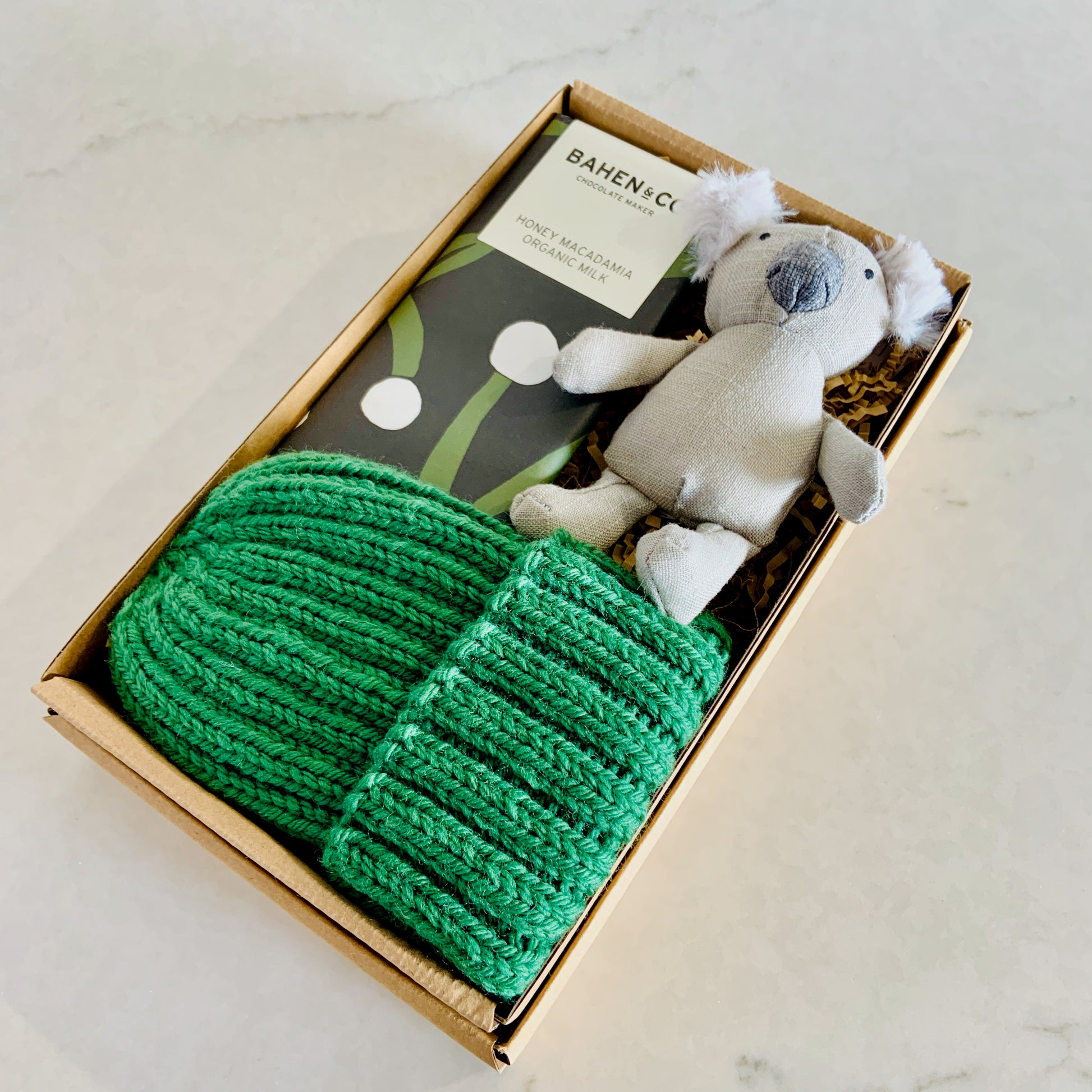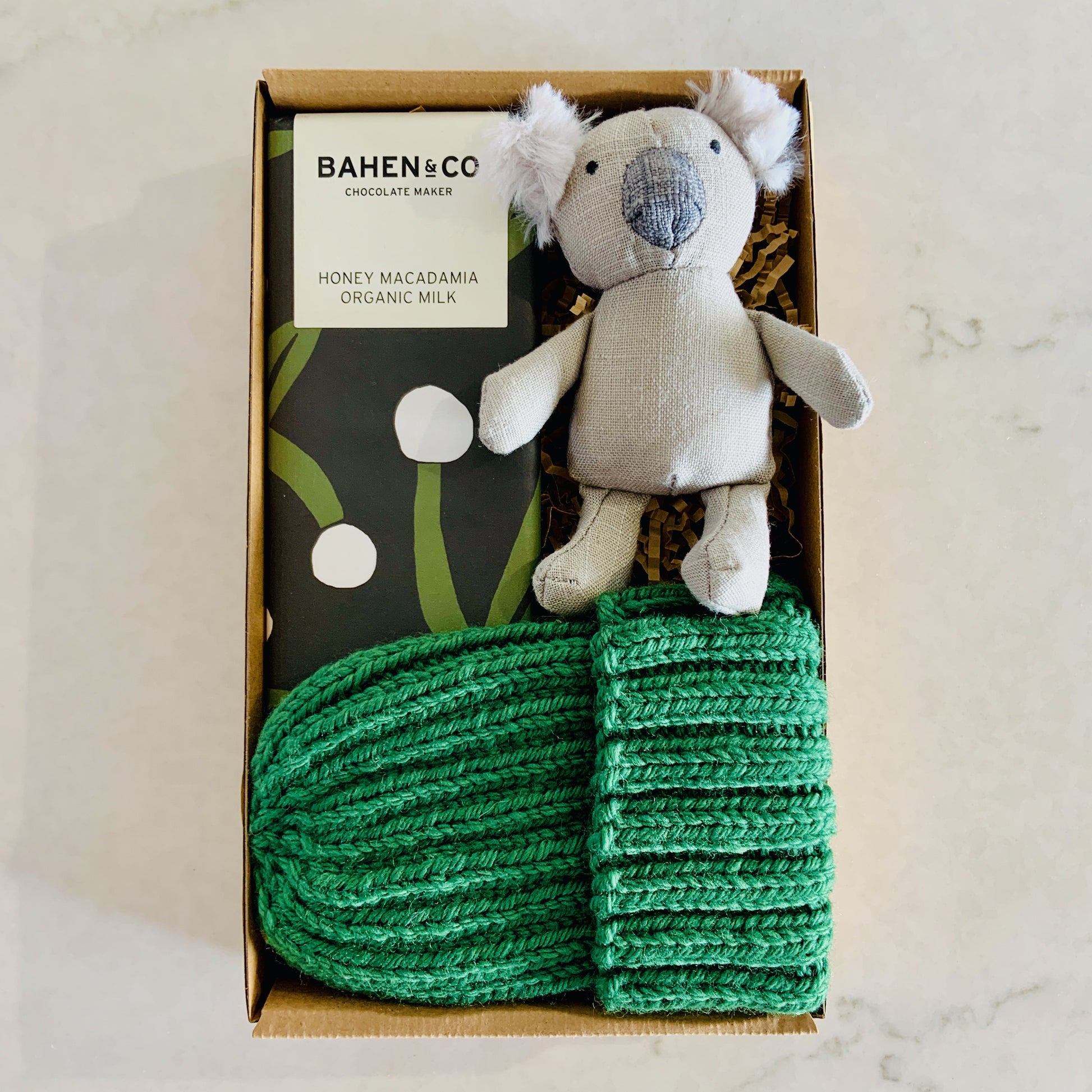 A beautiful Australian themed gift to celebrate mum and baby. This gender neutral gift presented in a Habeō gift box makes a wonderful baby shower or new arrival gift.