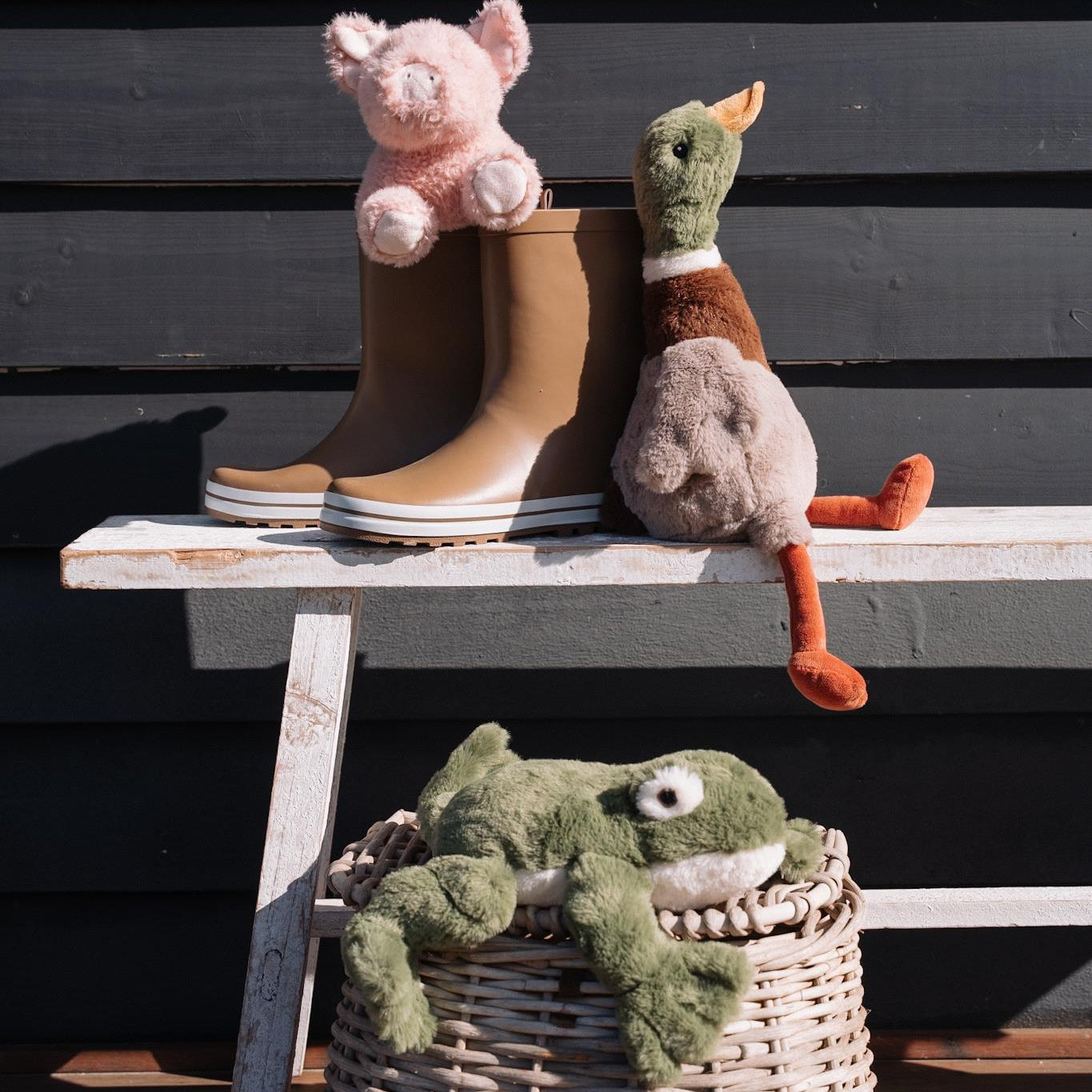Finley is the clever Green Tree Frog who hops happily around the farm. His soothing green colour helps him blend seamlessly with the leaves, keeping him safe from curious predators. Finley is most active at night, leaping from tree to tree under the moonlight while exploring his leafy playground. When he's not climbing high above the ground, he enjoys resting among the branches, watching the farm settle into a quiet evening. Curious, agile, and a little mischievous, Finley brings a touch of nocturnal magic to the farm, turning every night into a tiny adventure.