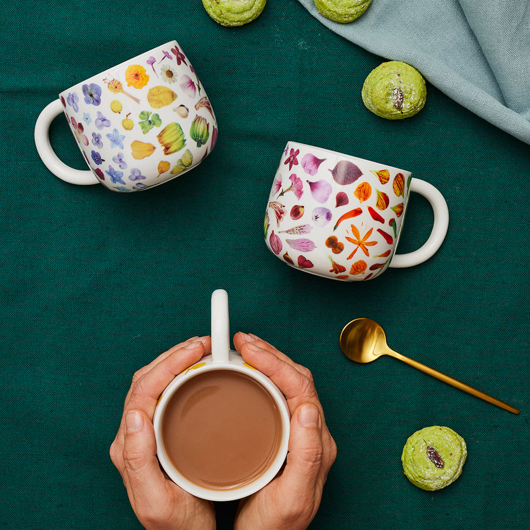 Handcrafted from high-fired porcelain and decorated with Angus & Celeste's original, botanically inspired artwork. The bright and colourful patterns on these Sunny Day Mugs is striking on the crisp white porcelain and are sure to bring some light into your life and kick-start your daily rituals.
