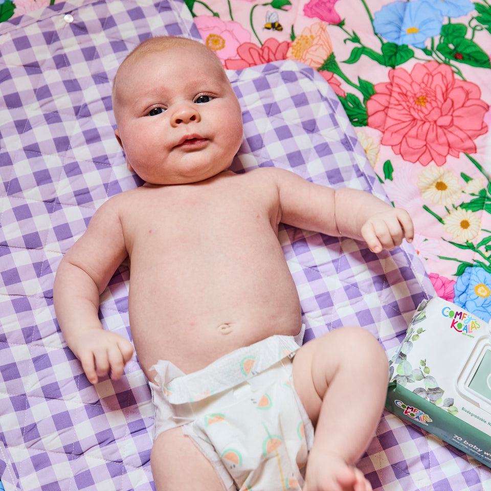 Make changing on the go a breeze with this handy travel change mat pouch. Made from quilted organic cotton canvas, this fold up change mat is a little layer for comfort and cleanliness when out and about. Machine washable and easy flip and fold, keep this little gem tucked away in your baby bag for one less thing to think about!