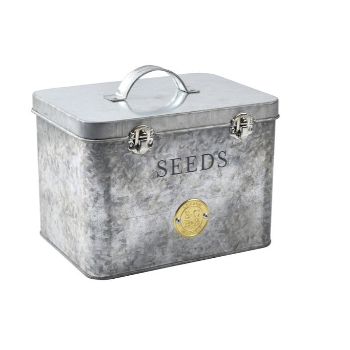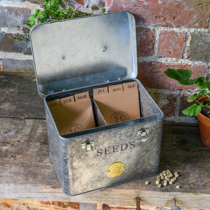 This beautifully designed seed organiser is perfect for collecting, storing and organising seed packets. The metal handle in the lid makes carrying easy, with two strong metal clasps to hold the hinged lid securely shut.
