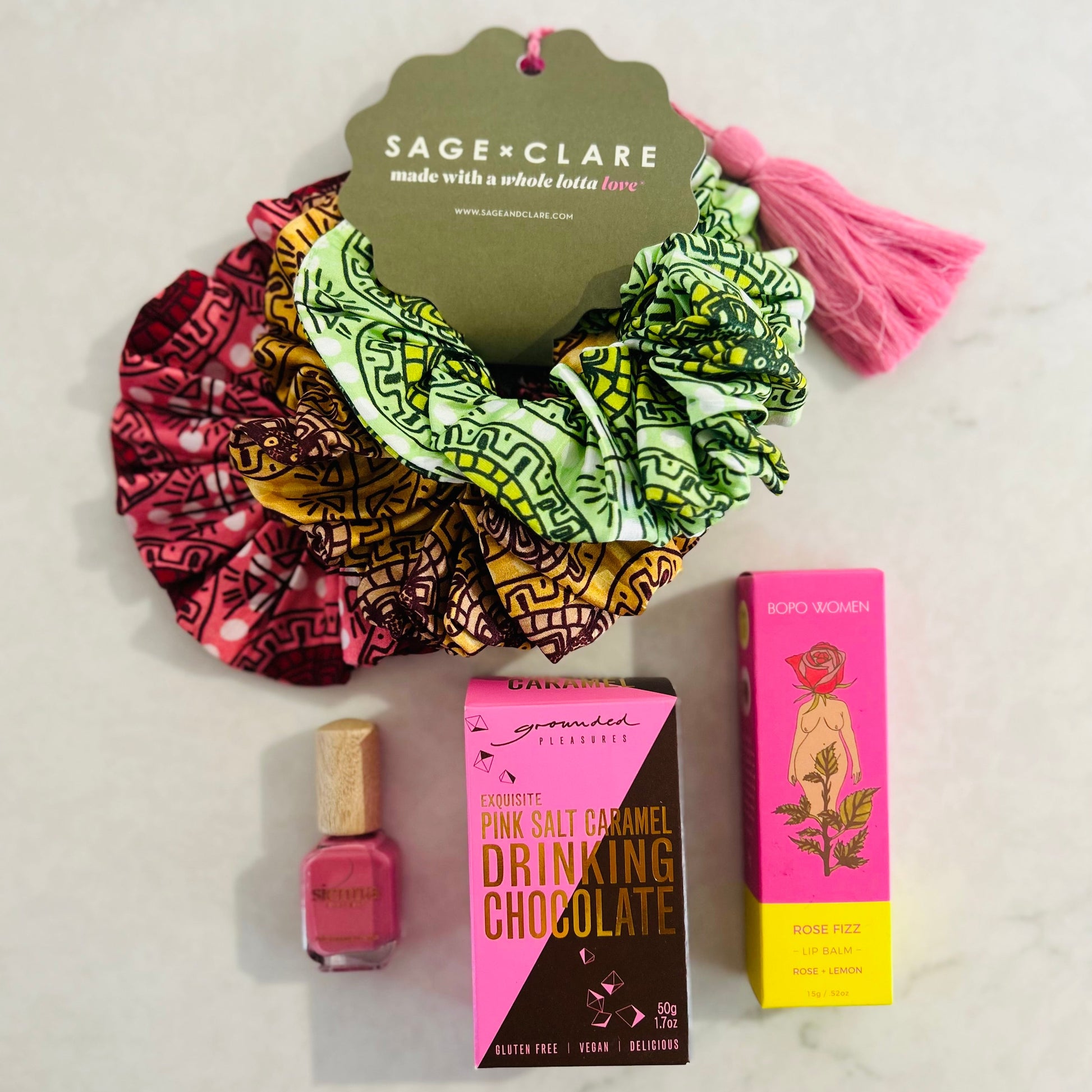 - Gabriella Silk Scrunchie Set: Set of 3 luxurious silk scrunchies by Sage x Clare, designed for gentle wear, less breakage and a whole lot of style.