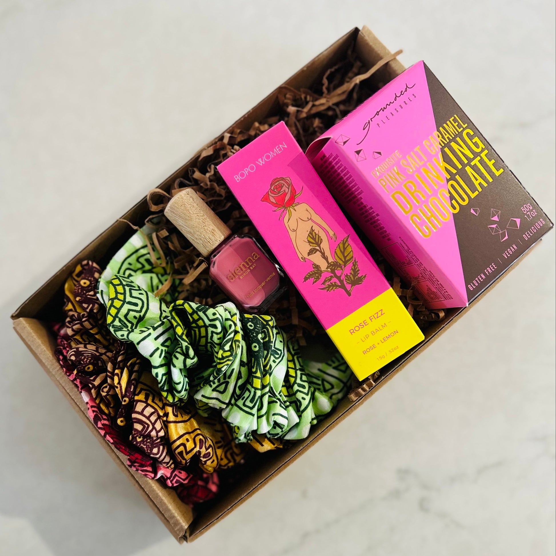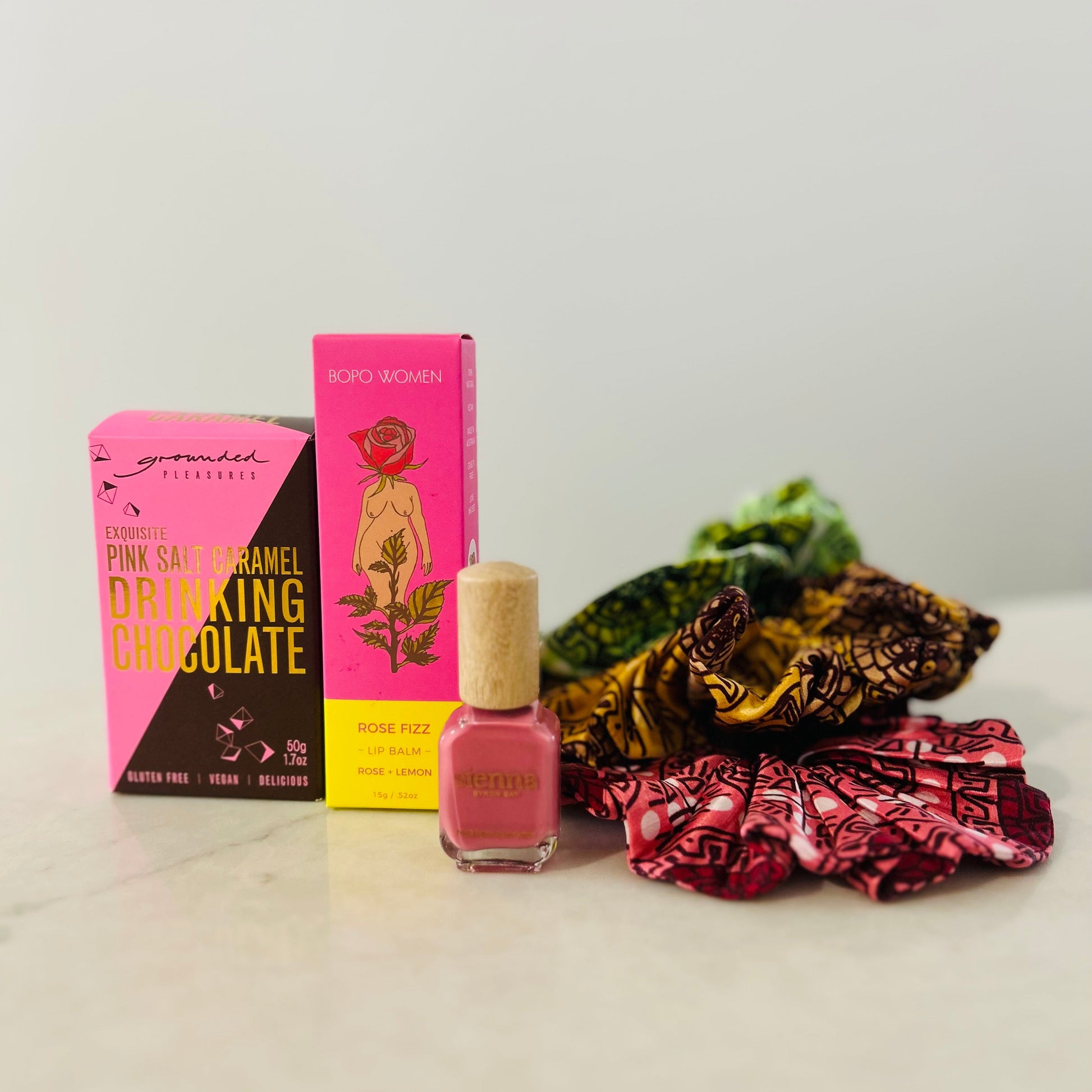 - Pink Salt Caramel Drinking Chocolate: Grounded Pleasures have taken their lovely bold and exquisite cocoa, added a naturally caramelly unrefined organic panela cane sugar and seasoned it with pink lake salt. It is smooth and utterly delicious. 50g / 3 serves.