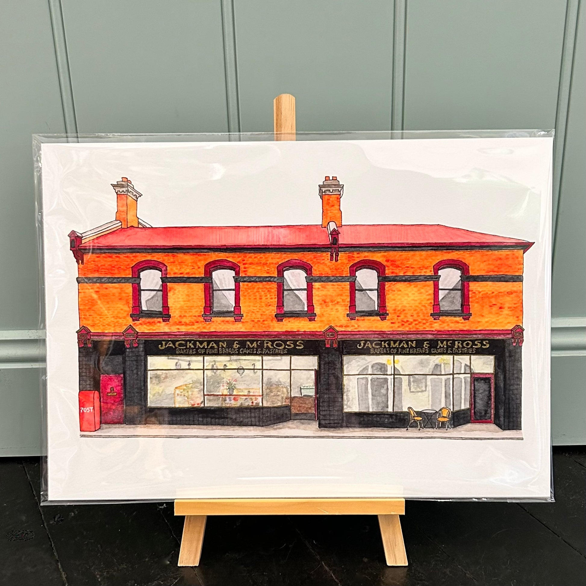 Jackman & McRoss is part of a growing collection of illustrations from Habeō Studio. Rhea's watercolour paintings capture a little piece of the charming architecture in Battery Point, Tasmania. Our art prints are quality reproductions of the original paintings and come in standard sizes for easy framing.