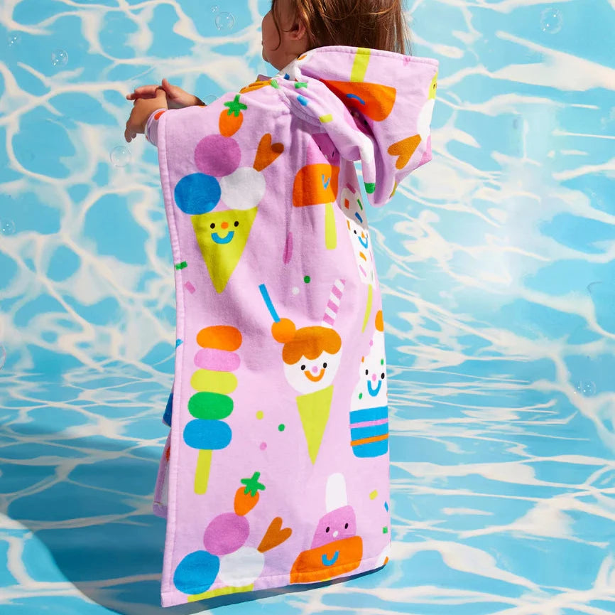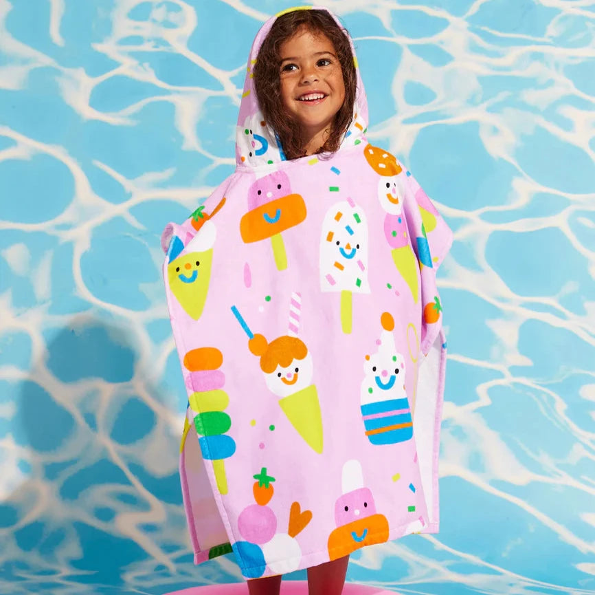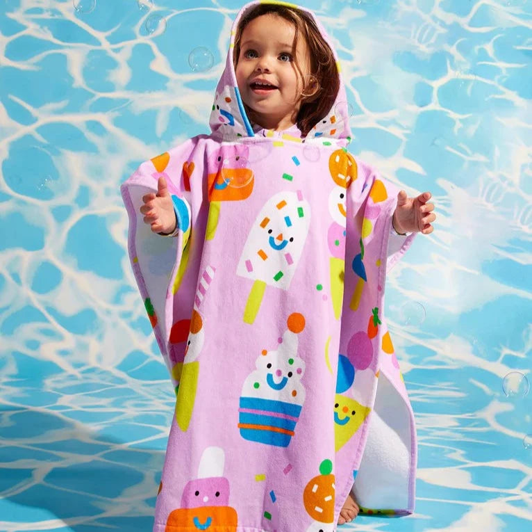 Who's ready for beach days? Drying off has never looked so good! Cover up in style this summer with these super soft hooded poncho towels for toddlers and kids. Features a built-in hood, white underside, and measures 60cm x 67cm.