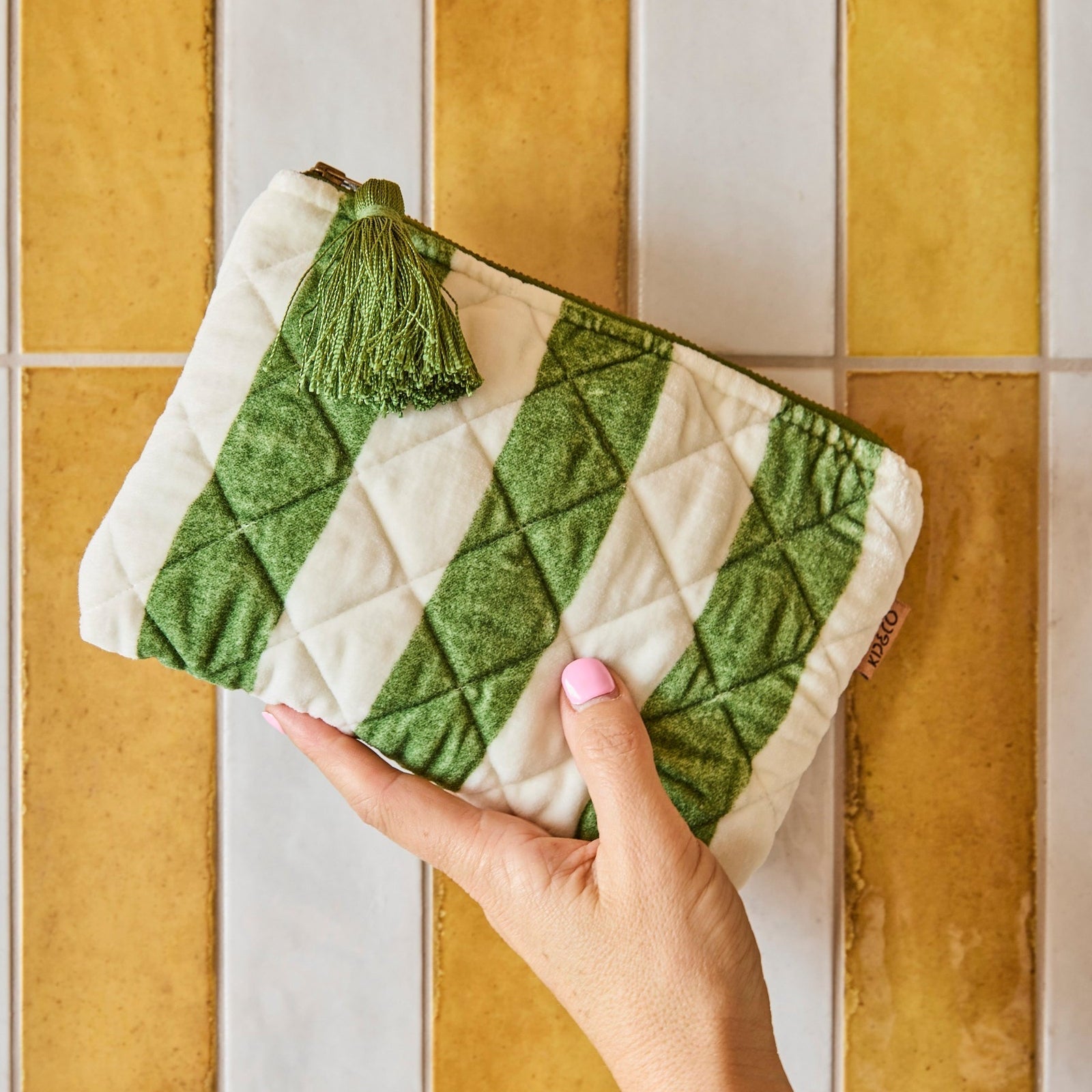 - Quilted velvet cosmetics purse with zip closure and feature tassel