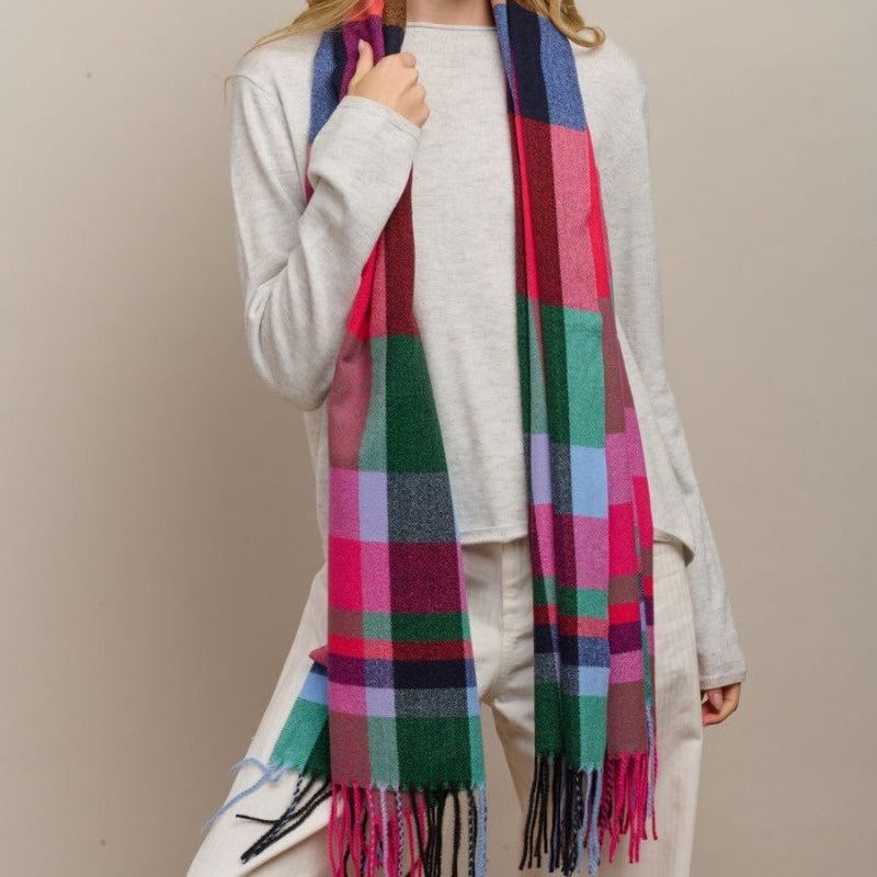 This soft and warm scarf features a classic check pattern.