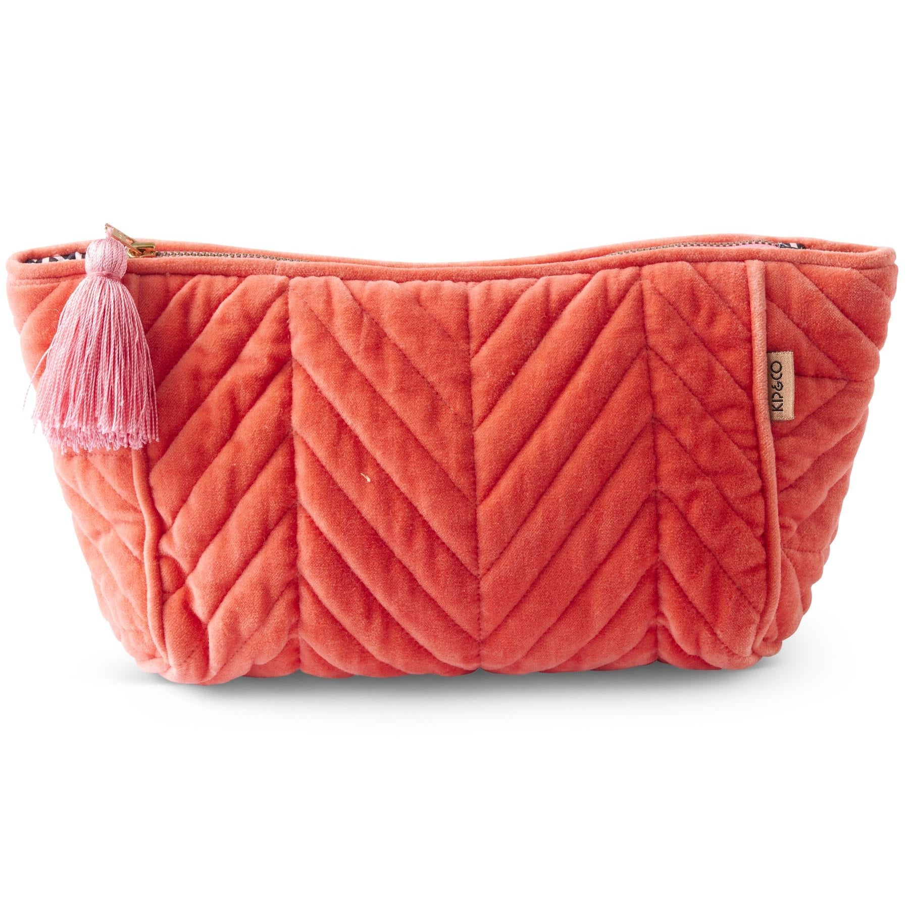 - Velvet toiletry bag with zip closure and feature tassel