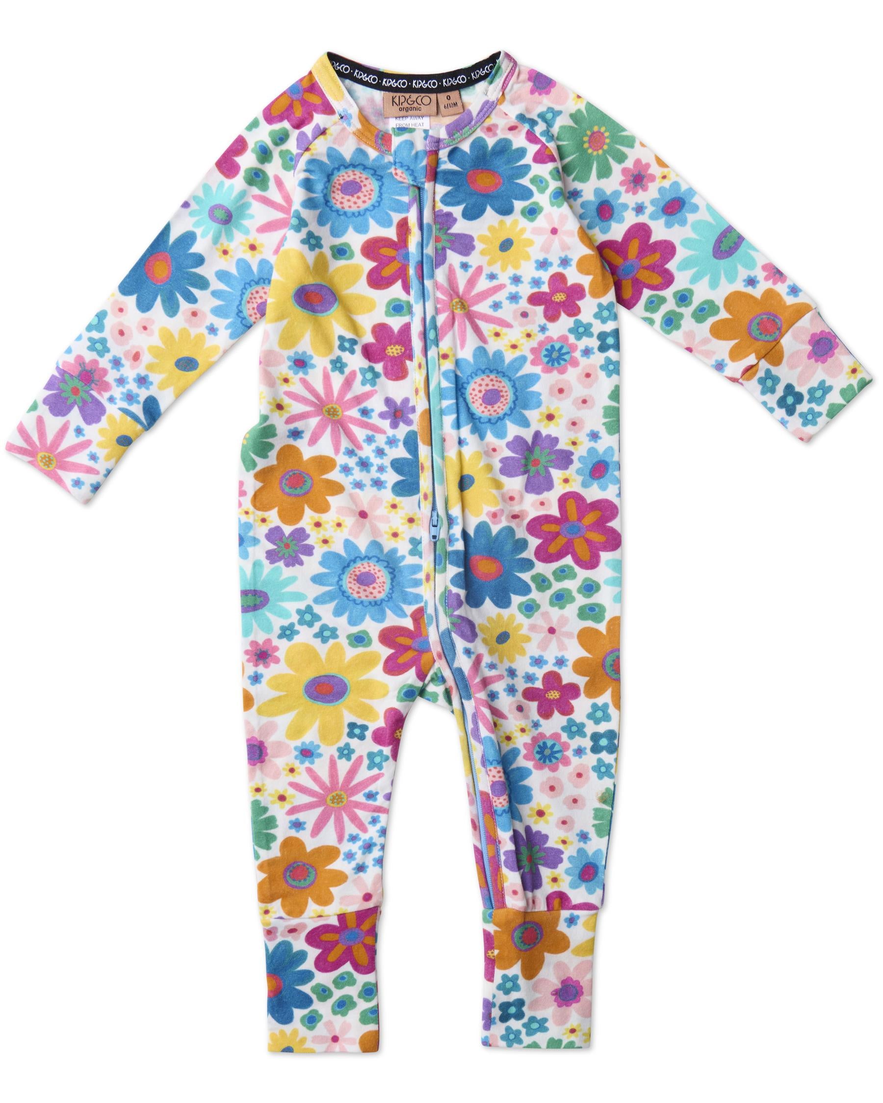 Rainbow Flowers Organic Long Sleeve Zip Romper