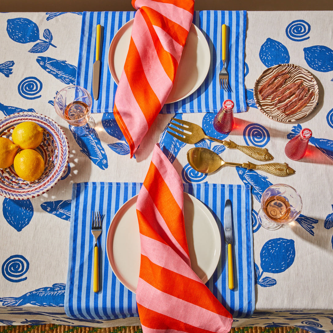This tablecloth features original artwork by Bonnie and Neil on 100% French flax linen.