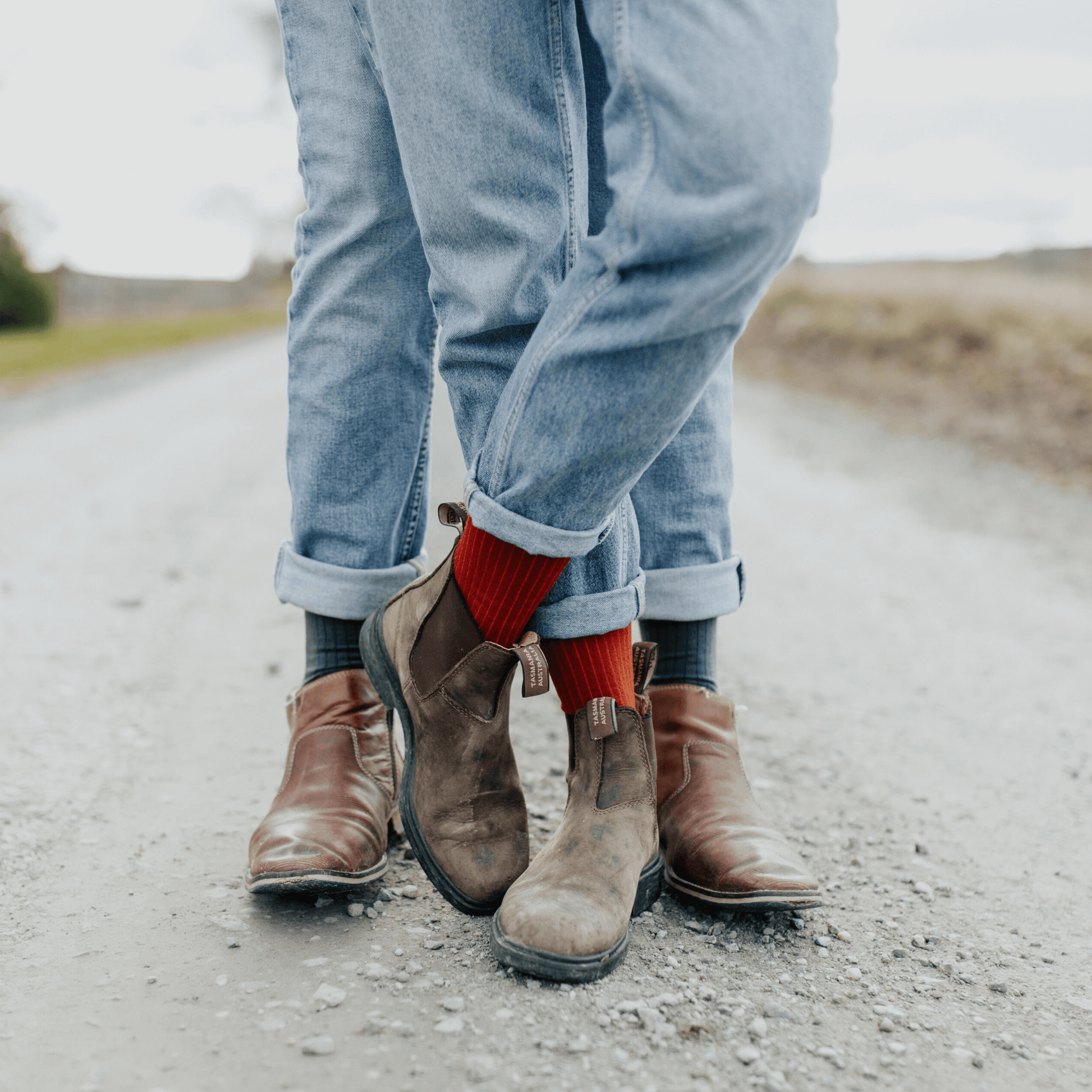 Rust coloured merino wool ribbed crew socks for women.