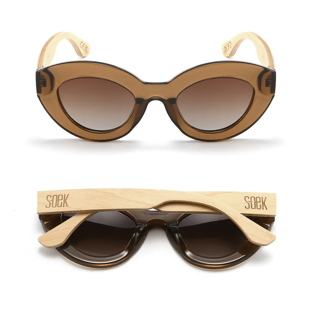 A 90s inspired frame with a modern make over, the Stevie sunglasses are a must have for the season. The Stevie sunglasses have black polarised graduated lenses, white maple wood arms and come with a cork case.
