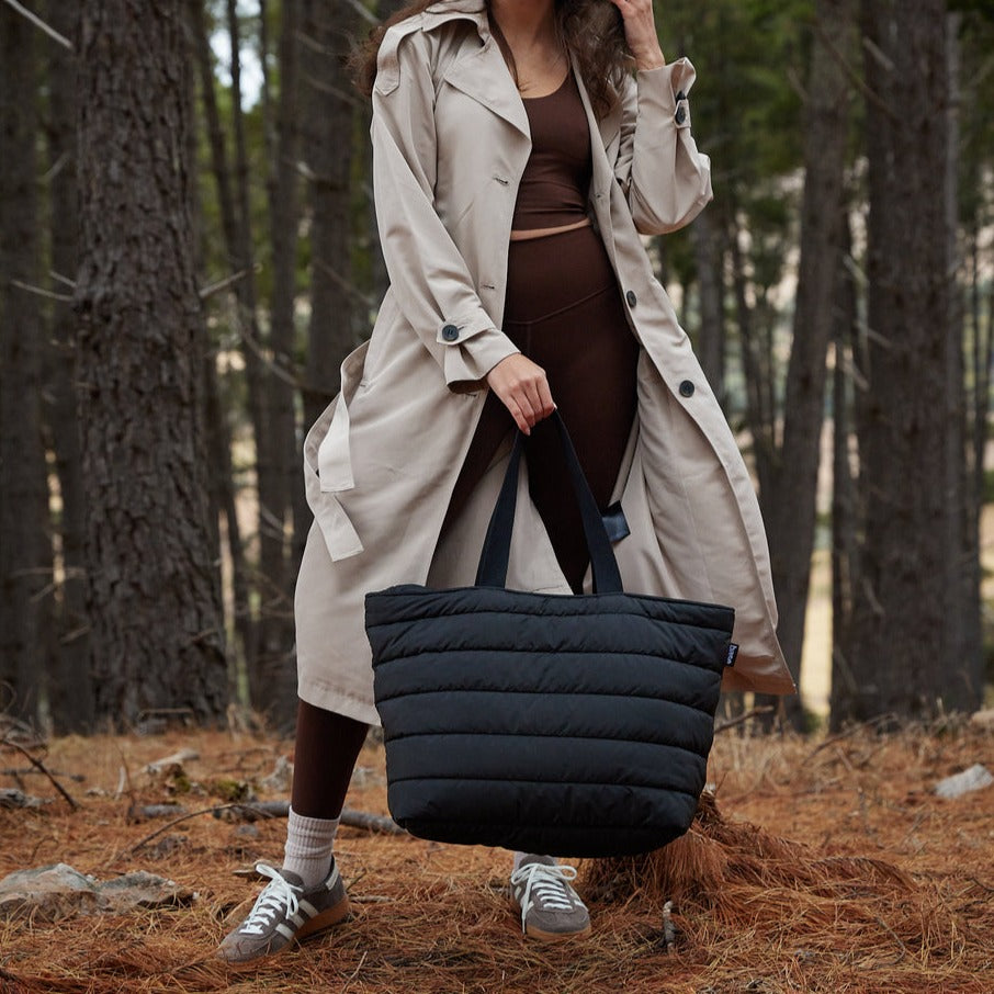 This bag is your stylish sidekick with its bold, padded fabric and generously sized design. Take it from morning Pilates to the office or a short weekend getaway.