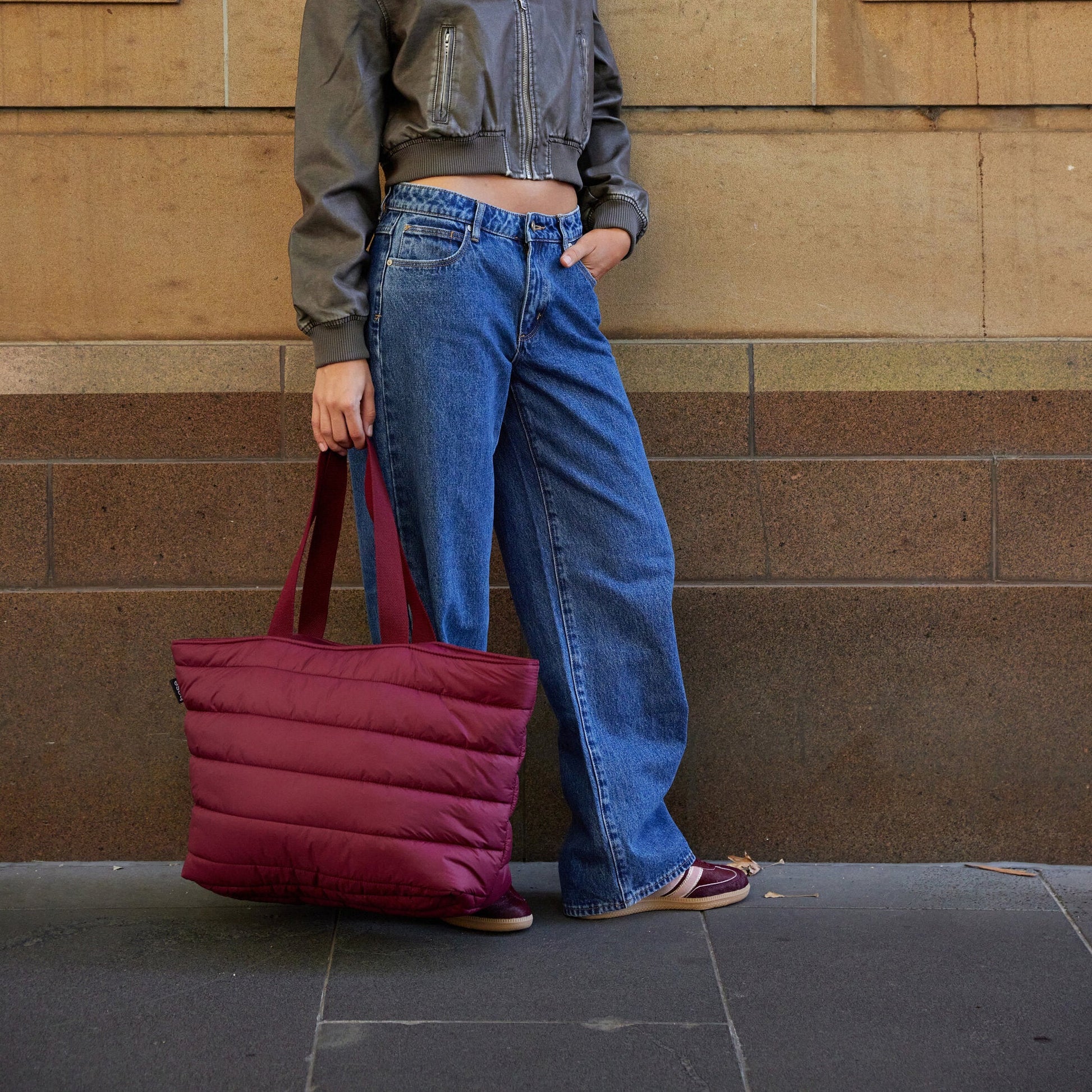 The chunky zip closure keeps everything contained while soft cotton shoulder straps deliver carrying comfort. Ultra-lightweight, cloud-like padding adds fun to the functionality of this everyday tote bag.