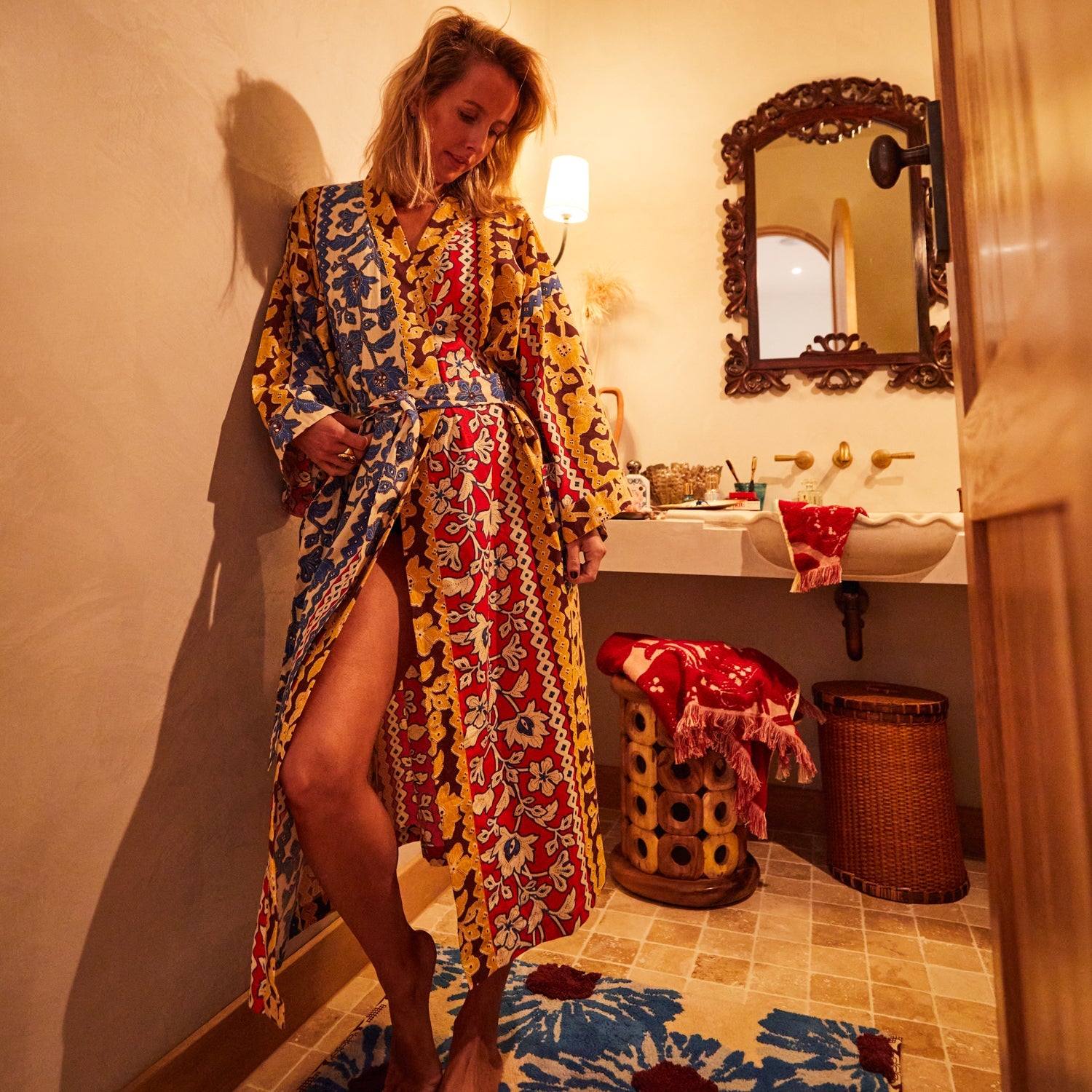 This robe makes you feel like you've got your life together. Made from soft cotton with wide bell sleeves, lounge days never felt so luxe.